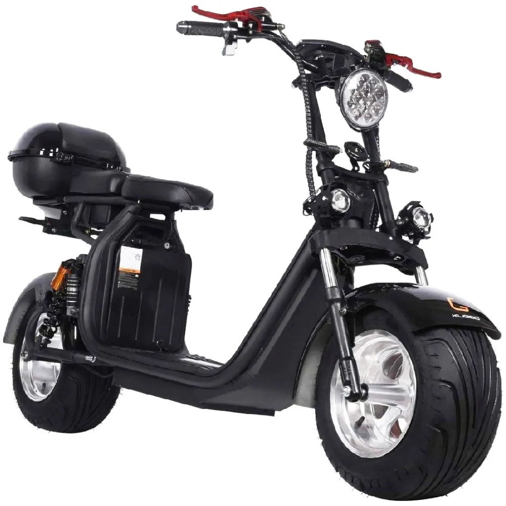 Электроскутер Citycoco Kugoo C6 – обновленный вариант бренда занимает лидирующие позиции в продажах. Брутальный кричащий дизайн заинтересовал райдеров-экстремалов и любителей рыбалки. Широкая отлично сцепляемые шины обещают отличную проходимость и отсутствие проблем в дороге. Техника создана для езды по бездорожью, не разочарует при преодолении небольших препятствий и путешествии по лесным тропинкам.