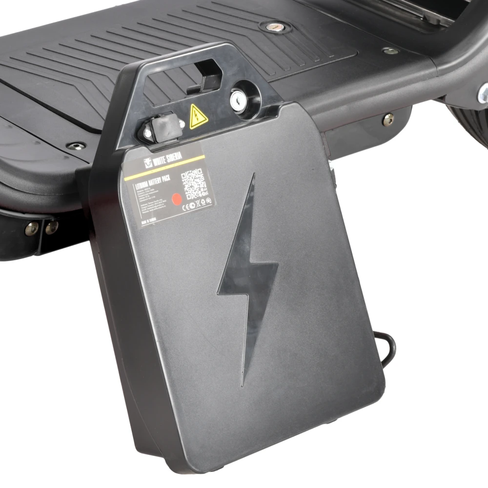 Есть возможность установки второго аккумулятора в отсек под седлом или же использовать его как «бардочок». Батарея – 60 вольт на 20 ампер. На двух аккумуляторах можно преодолеть 90 км без подзарядки. Максимальная дальность хода зависит от погодных условий, веса райдера, поверхности, по которой вы передвигаетесь и стиля вождения.