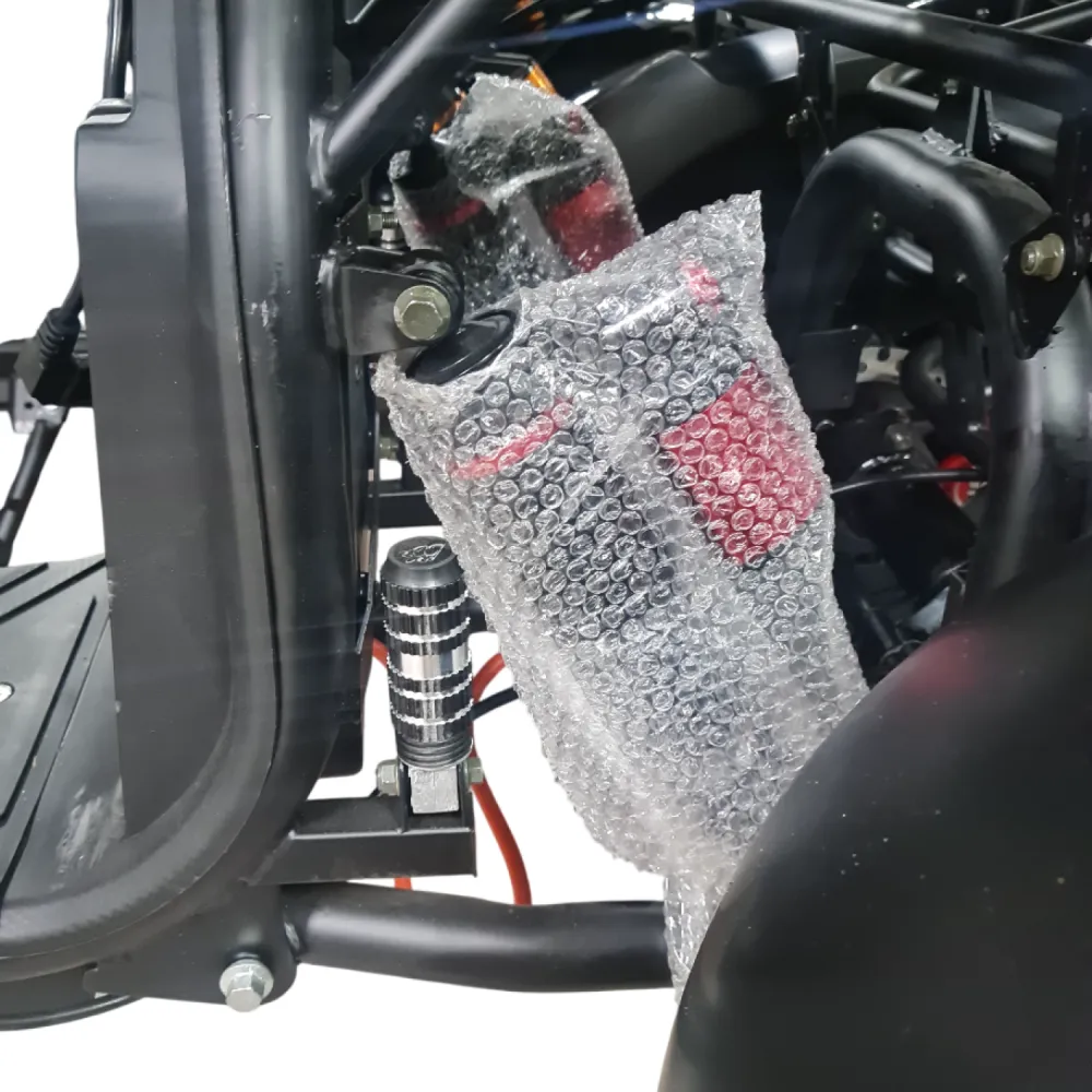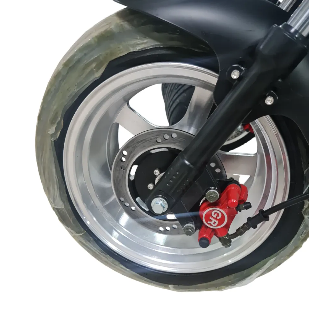 Гидравлические тормоза на обоих осях обеспечивают мгновенную остановку даже на высокой скорости. Прочная стальная рама выдерживает нагрузку до 250 кг, делая скутер универсальным для поездок вдвоем или перевозки груза.